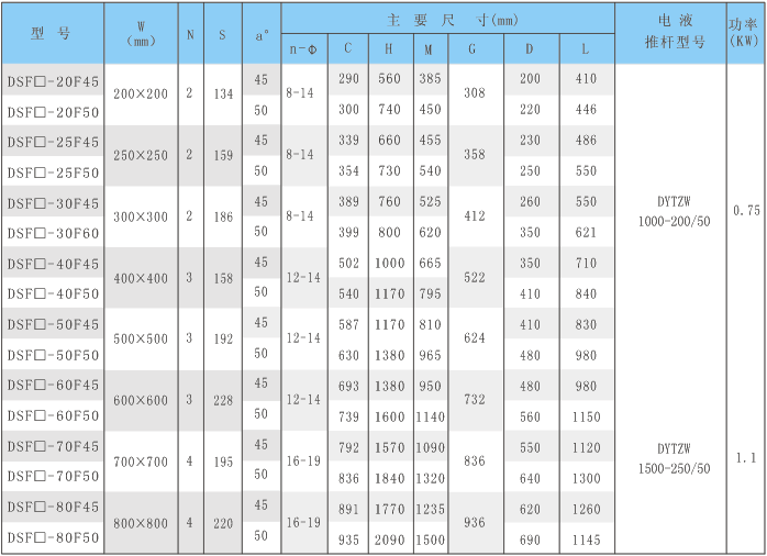 外形尺寸及技術參數表(F型)