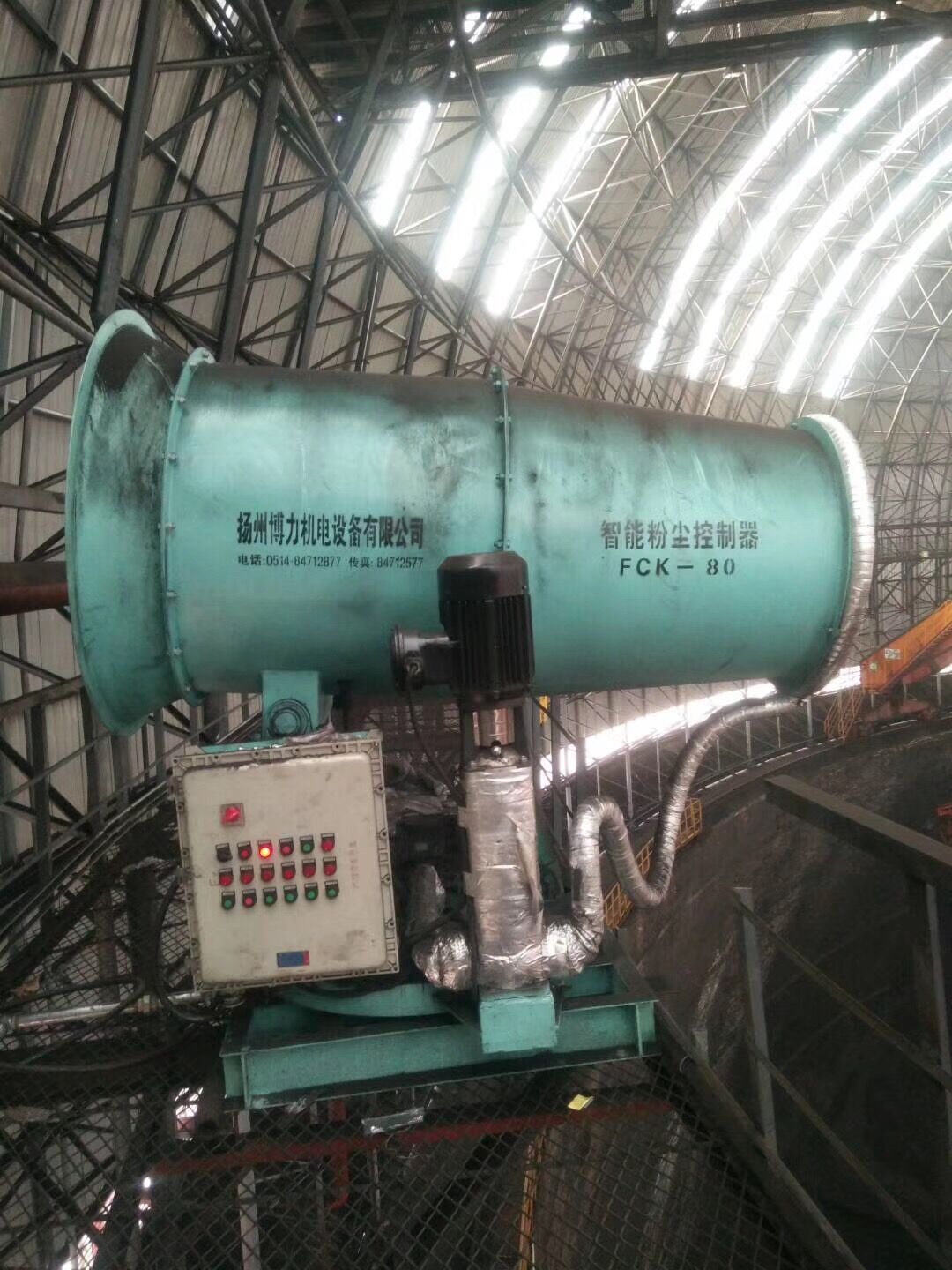 國電華北電力有限公司霍州發(fā)電廠2×600MW機(jī)組圓形煤場封閉工程噴霧抑塵除塵降塵設(shè)備-FCK-HB80防寒防爆型遠(yuǎn)程射霧器。