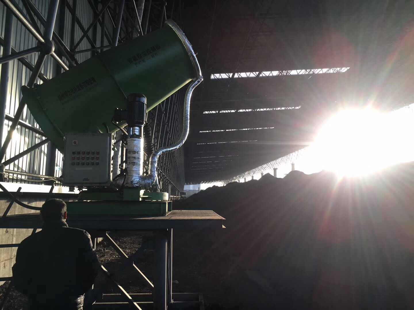 項目地位于山西省陽泉市經(jīng)濟技術(shù)開發(fā)區(qū)下五渡,陽泉天成煤炭鐵路集運有限公司儲煤棚,煤場有南北兩個貨場儲煤棚,南貨場儲煤棚使用8臺FCK-HB80防寒防爆型智能粉塵控制器和2臺BL/FCK-HB100防寒防爆型智能粉塵控制器全方位噴霧降塵除塵。北貨場儲煤棚使用12臺BL/FCK-HB50“博藝”牌防寒防爆型智能粉塵控制器全覆蓋噴霧抑塵。